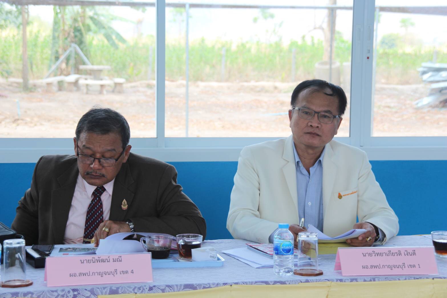 มีผู้นำหน่วยงานทางการศึกษาในพื้นที่มาร่วมประชุมและให้การต้อนรับหลายท่าน อาทิ นายนิพัฒน์ มณี ผู้อำนวยการสำนักงานเขตพื้นที่การศึกษาประถมศึกษากาญจนบุรี เขต 4 นายวิทยาเกียรติ เงินดี ผู้อำนวยการสำนักงานเขตพื้นที่การศึกษาประถมศึกษากาญจนบุรี เขต 1 นายชาลี สำรองทรัพย์ ผู้แทนศึกษาธิการจังหวัดกาญจนบุรี ตัวแทนศึกษาเทศก์ของสำนักงานศึกษาธิการจังหวัดกาญจนบุรี และสำนักงานเขตพื้นที่การศึกษา มีนายศิวรัตน์ พายุหะ ผู้อำนวยการโรงเรียนราษฎร์บำรุงธรรม และคณะครู ได้สรุปผลการดำเนินงานของโรงเรียนในฐานะสถานศึกษานำร่อง และการพัฒนาคุณภาพการศึกษาของโรงเรียนในภาพรวม