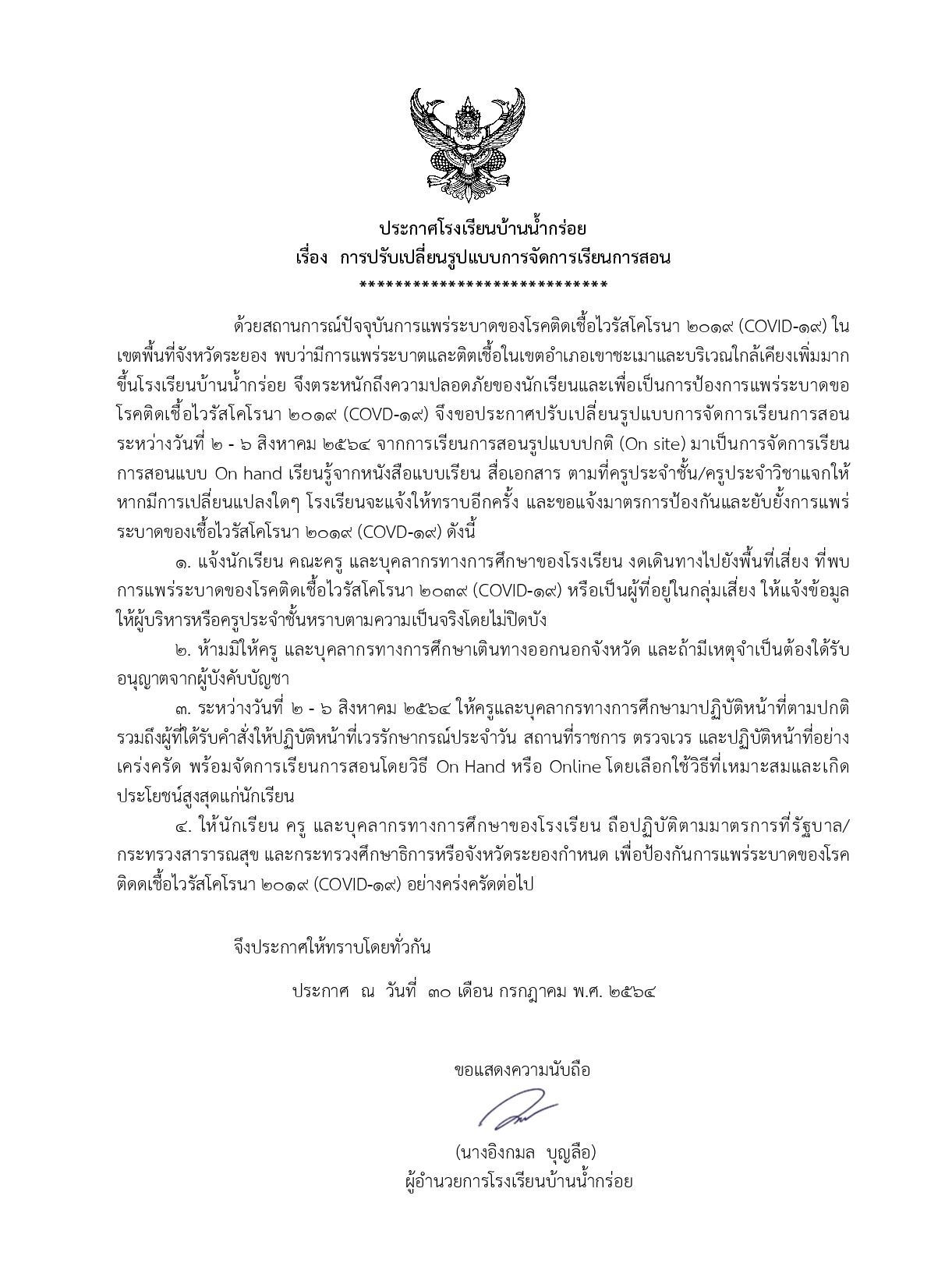 ต่อมาในสถานการณ์ที่นักเรียนมาโรงเรียนไม่ได้ ครูจะทำคลิปสอนออนไลน์ก็ไม่ได้ เพราะสภาพปัญหาเรื่องอินเทอร์เน็ต จึงจำเป็นต้องปรับปรุงโฉมใหม่กันทั้งโรงเรียน คือ โรงเรียนบ้านน้ำกร่อยจะเลิกสอน แต่เปลี่ยนเป็นการส่งเสริมให้นักเรียนเรียนรู้ด้วยตนเอง นี่คือจุดเริ่มต้น