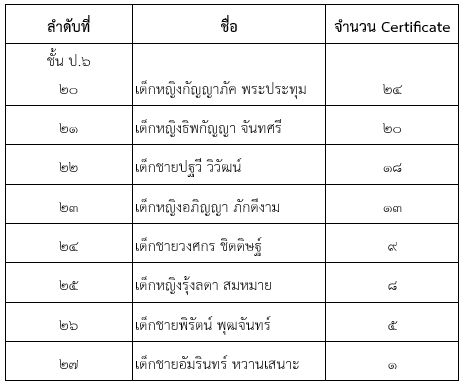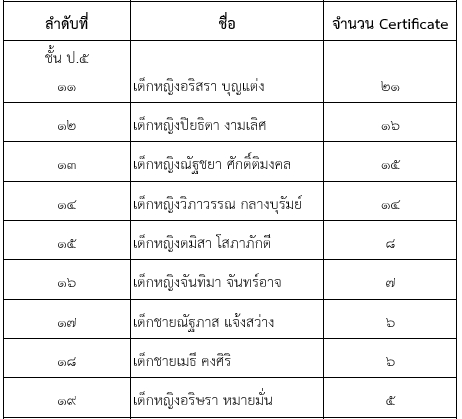 ข้อมูลแสดงจำนวน certificate ของนักเรียนโรงเรียนบ้านน้ำกร่อย (ข้อมูลเมื่อวันที่ ๙ กรกฎาคม ๒๕๖๔)