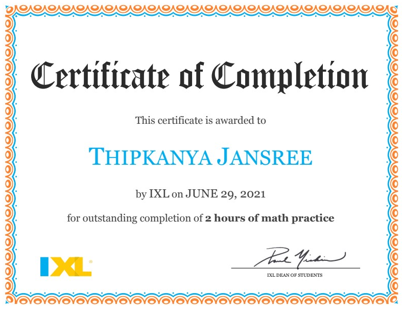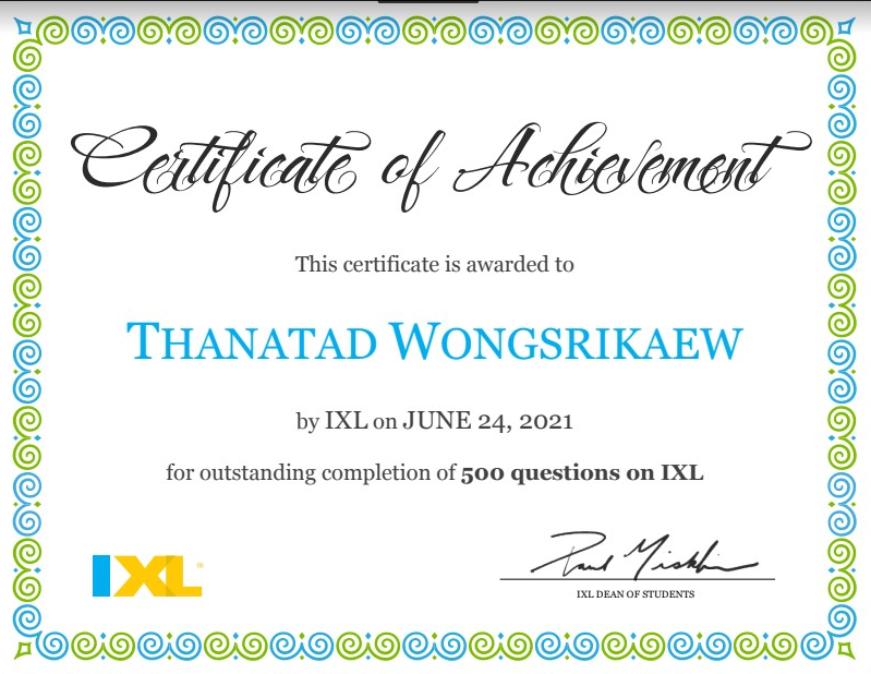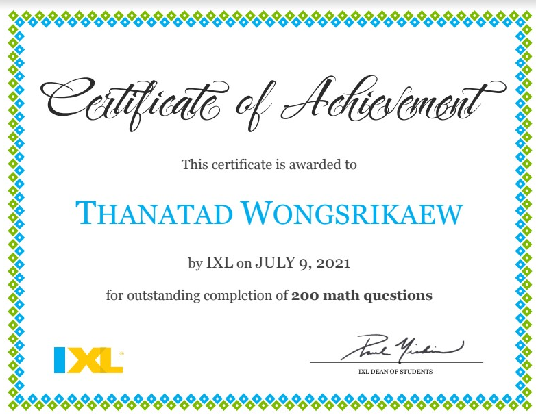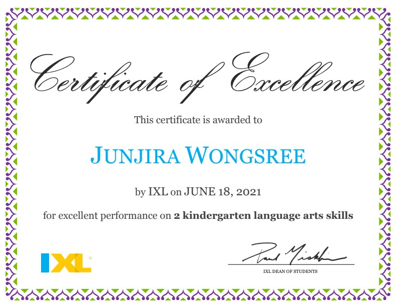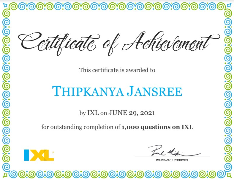 ผลการเรียนรู้ของนักเรียนชั้นประถมศึกษาปีที่ ๔-๖ จำนวน ๒๗ คน แสดงใน dashboard ของแอพพลิเคชั่น IXL Learning ตั้งแต่เดือนมิถุนายน ถึงเดือนปลายเดือนกรกฎาคม ๒๕๖๔ แสดงให้เห็นว่านักเรียนตอบคำถามได้ทั้งสิ้น ๒๗,๘๓๒ คำถาม ใช้เวลาเรียนทั้งสิ้น ๗๖ ชั่วโมง เรียนที่โรงเรียน ๔๓ ชั่วโมง และเรียนที่บ้านใช้ ๓๓ ชั่วโมง ทำให้นักเรียนมีทักษะในระดับเชี่ยวชาญ (skills mastered) ๖๔๐ ทักษะ และทักษะในระดับชำนาญ (skills proficient) ๖๕๘ ทักษะ การเรียนรู้ของนักเรียนเกิดจากการสั่งสมประสบการณ์ ความอยากรู้ และการสนับสนุนของผู้ปกครอง ในที่นี้ขอยกตัวอย่าง ดังนี้