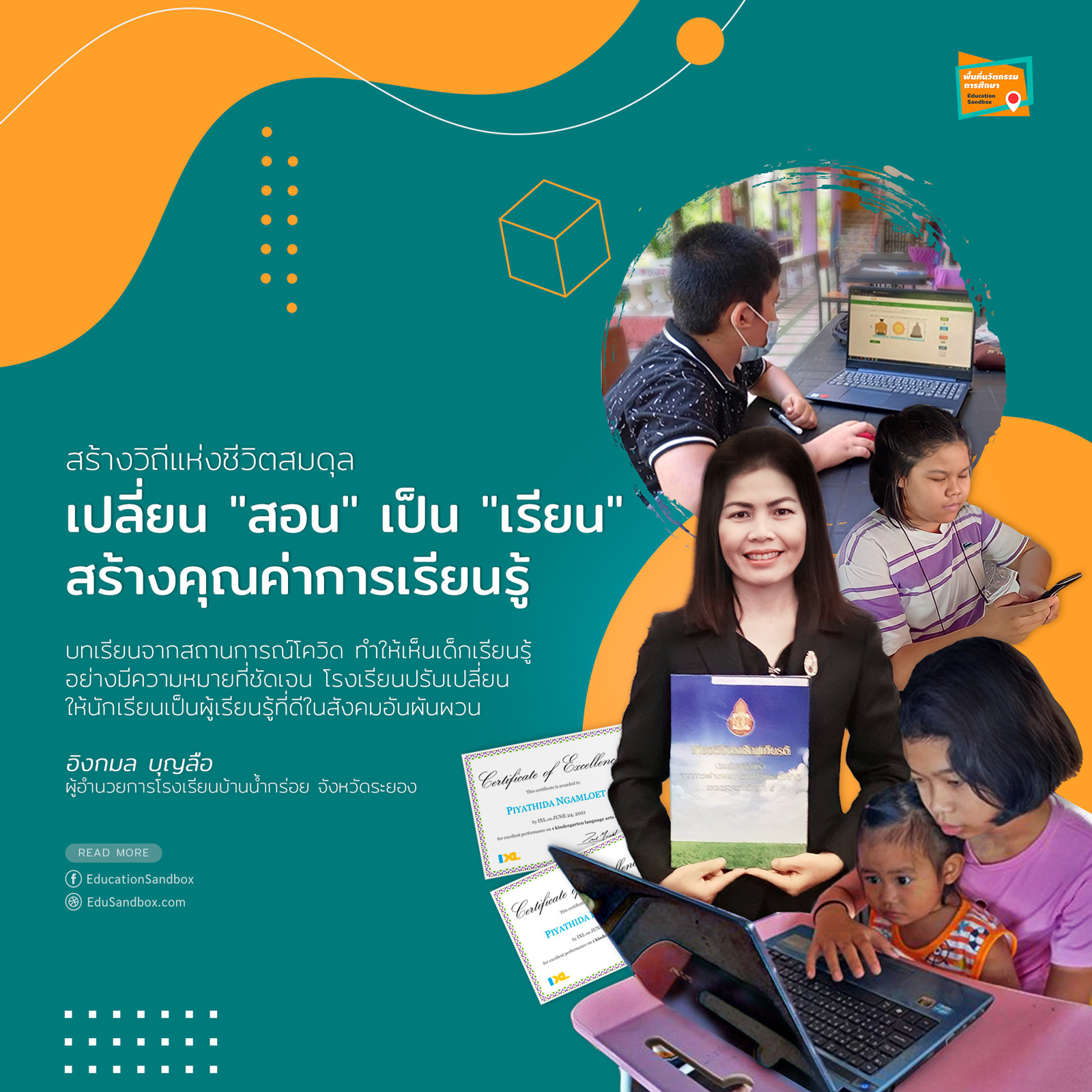 ต่อมาในสถานการณ์ที่นักเรียนมาโรงเรียนไม่ได้ ครูจะทำคลิปสอนออนไลน์ก็ไม่ได้ เพราะสภาพปัญหาเรื่องอินเทอร์เน็ต จึงจำเป็นต้องปรับปรุงโฉมใหม่กันทั้งโรงเรียน คือ โรงเรียนบ้านน้ำกร่อยจะเลิกสอน แต่เปลี่ยนเป็นการส่งเสริมให้นักเรียนเรียนรู้ด้วยตนเอง นี่คือจุดเริ่มต้น