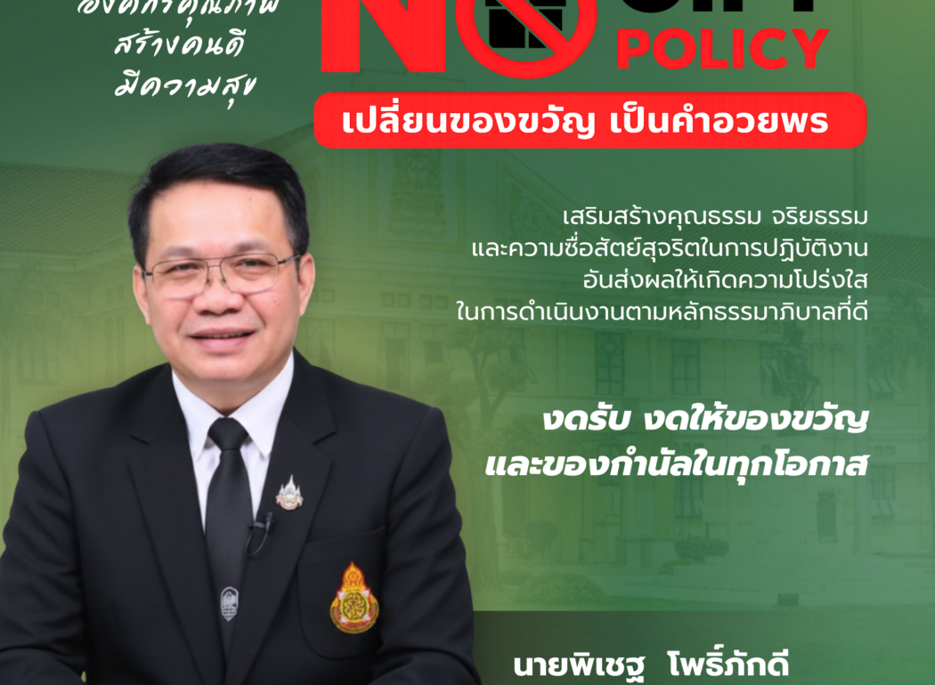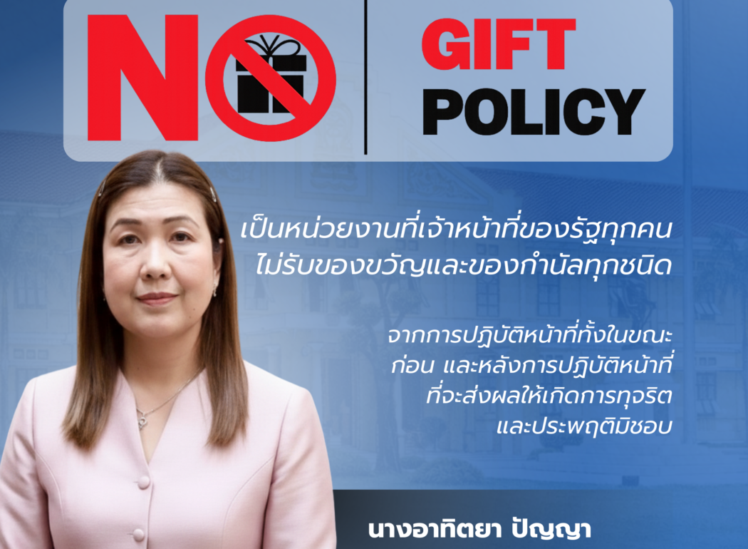 NO GIFT POLICY เป็นหน่วยงานที่เจ้าหน้าที่ของรัฐทุกคน ไม่รับของขวัญและของกำนัลทุกชนิด