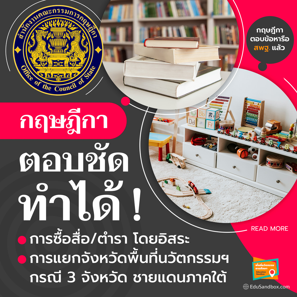 ซึ่งหนังสือสำนักงานคณะกรรมการกฤษฎีกา ด่วนที่สุด ที่ นร 0906/9 ลงวันที่ 29 มกราคม 2563 ซึ่งประกอบด้วยบันทึกสำนักงานคณะกรรมการกฤษฎีกา เรื่อง การจัดตั้งพื้นที่นวัตกรรมการศึกษาจังหวัดชายแดนภาคใต้ และการคัดเลือก จัดหา หรือใช้ตำราหรือสื่อการเรียนการสอนของสถานศึกษานำร่อง ดังไฟล์นี้ http://bit.ly/2OaXXJA หรือ >>คลิกเพื่อ Download เอกสาร<< ซึ่งมีรายละเอียดดังนี้