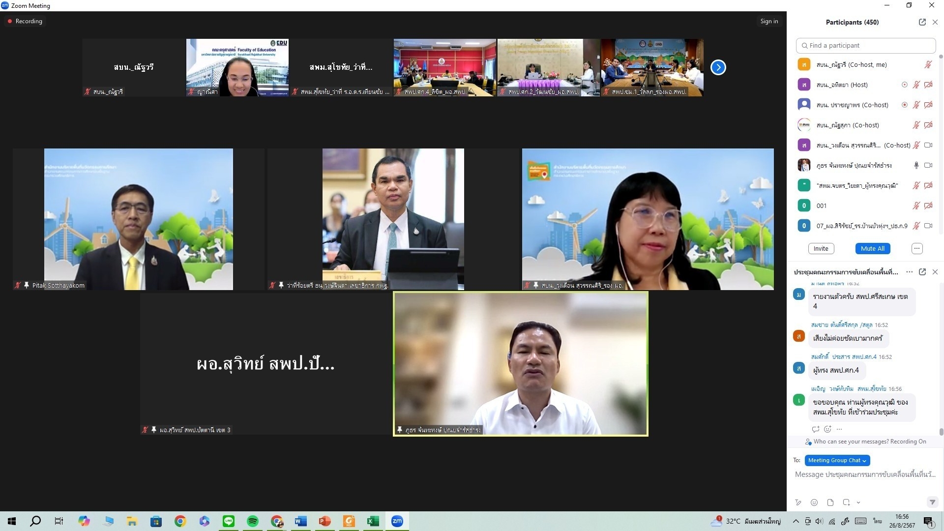เมื่อวันที่ 26 สิงหาคม 2567 สพฐ. โดย สบน. ได้จัดการประชุมคณะกรรมการขับเคลื่อนพื้นที่นวัตกรรมการศึกษาของสำนักงานเขตพื้นที่การศึกษา (สพท.) และสำนักบริหารงานการศึกษาพิเศษ (สศศ.) ผ่านสื่ออิเล็กทรอนิกส์ (Zoom Meetings) โดยมี ว่าที่ร้อยตรี ธนุ วงษ์จินดา เลขาธิการ กพฐ. เป็นประธานการประชุม พร้อมด้วยผู้ช่วยเลขาธิการ กพฐ. นายภูธร จันทะหงษ์ ปุณยจรัสธำรง และนายสุรินทร์ มั่นประสงค์, ผู้เชี่ยวชาญ สพฐ. นายสุวิทย์ บึงบัว, บุคลากร สบน., และคณะกรรมการที่ได้รับการแต่งตั้งจาก สพฐ. รวมทั้งสิ้น 657 คน เพื่อชี้แจง และซักซ้อมความเข้าใจเกี่ยวกับหน้าที่ และความรับผิดชอบของคณะกรรมการฯ