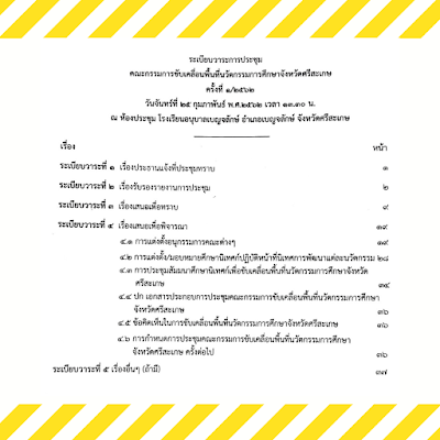 มีวาระเพื่อทราบ มี 3 เรื่อง คือ 1) การประกาศรายชื่อสถานศึกษานำร่องพื้นที่นวัตกรรมการศึกษา จำนวน 50 โรงเรียน ซึ่งประกาศโดยคณะกรรมการขับเคลื่อนพื้นที่นวัตกรรมการศึกษาจังหวัดศรีสะเกษ ลงนามโดยผู้ว่าราชการจังหวัดศรีสะเกษ 2) การดำเนินการขับเคลื่อนพื้นที่นวัตกรรมการศึกษาจังหวัดศรีสะเกษของคณะอนุกรรมการแต่ละฝ่าย ได้แก่ ฝ่ายเลขานุการ ฝ่ายพัฒนานวัตกรรม ฝ่ายสร้างการรับรู้ 3) ความร่วมมือของภาคีเครือข่ายการศึกษา ที่มีหลายหน่วยงานเข้ามาร่วม อาทิ มูลนิธิสยามกัมมาจล TDRIสถาบันอาศรมศิลป์ โรงเรียนลำปลายมาศพัฒนา คณะศึกษาศาสตร์ มหาวิทยาลัยขอนแก่น